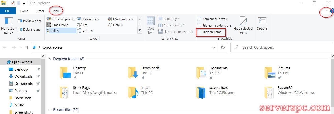 解决方案2:在Windows 10中显示隐藏的文件,并带有文件资源管理器: