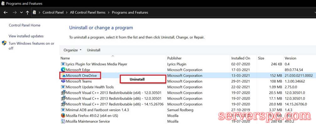右键单击Microsoft OneDrive选项,然后选择卸载