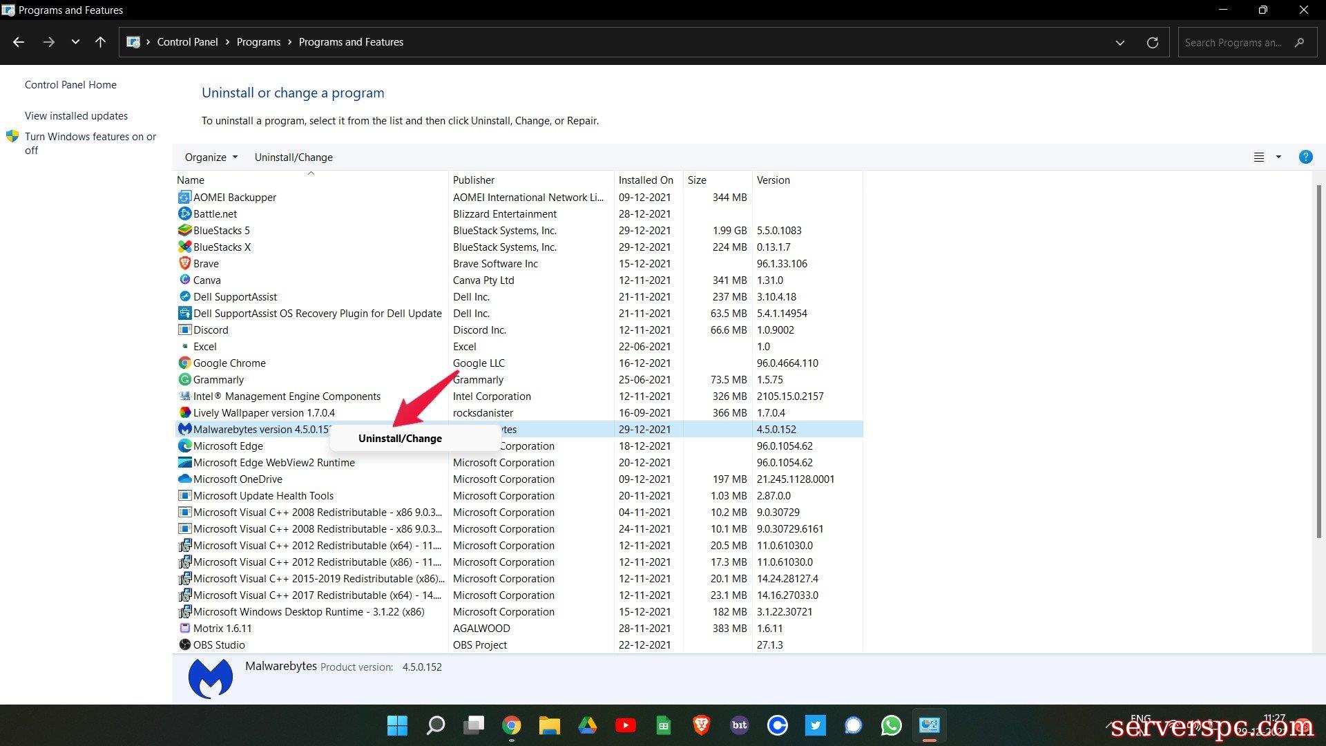 打开控制Panelgo到达程序,并导航到Avast AntivirusDouble单击IT,然后单击“ UnstallMake”,请务必通过删除其所有组件执行完整的删除