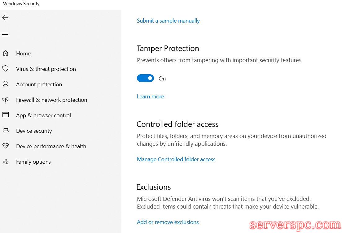 在“病毒威胁保护设置”菜单上,选择“管理设置” – 添加排除(在排除条件下)。此后,转到每个Bittorrent下载的默认位置的文件夹,然后您需要将其添加到其他项目的列表中然后保存更改。一旦您完成,请检查上述问题是否已解决。