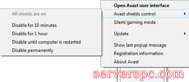 现在,右键单击防病毒托盘栏图标,然后找到并选择临时禁用选项。确保该选项允许您暂时禁用其盾牌。