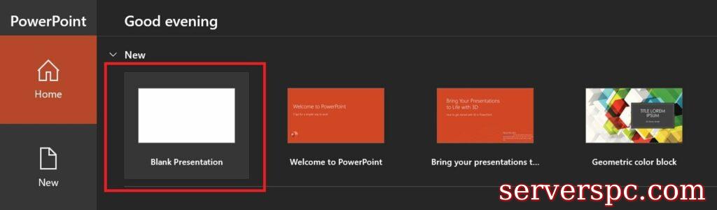 单击空白演示文稿,打开Microsoft PowerPoint创作新的演示文稿