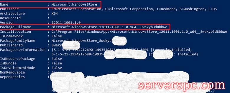 现在,您的PC上Windows OS的所有软件包都将显示为n.navigate,并搜索Microsoft.windowsstore [ 此搜索您必须手动滚动并有一定的耐心,搜索将需要一些时间]一旦找到了检查组件包装fackfullname的检查。它将具有很长的价值。