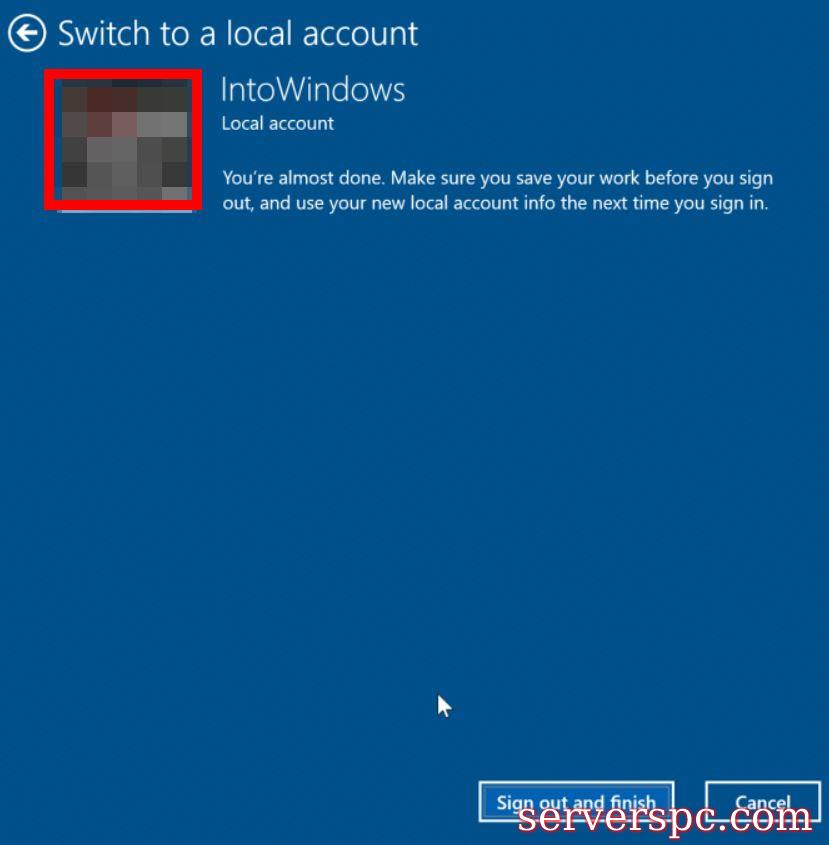 现在,在下一个蓝屏上,在给定的文本框上填写所有必需的信息(用户名,密码,重新输入密码和密码命中)。 (密码提示是在任何时间忘记的情况下记住或恢复密码的理想之选。)现在单击下一个选项卡,然后在下一个屏幕上进一步,单击登录和完成选项卡。在上面提到的所有步骤中,您的Windows 10 Microsoft帐户将自动断开连接并切换到本地用户帐户。