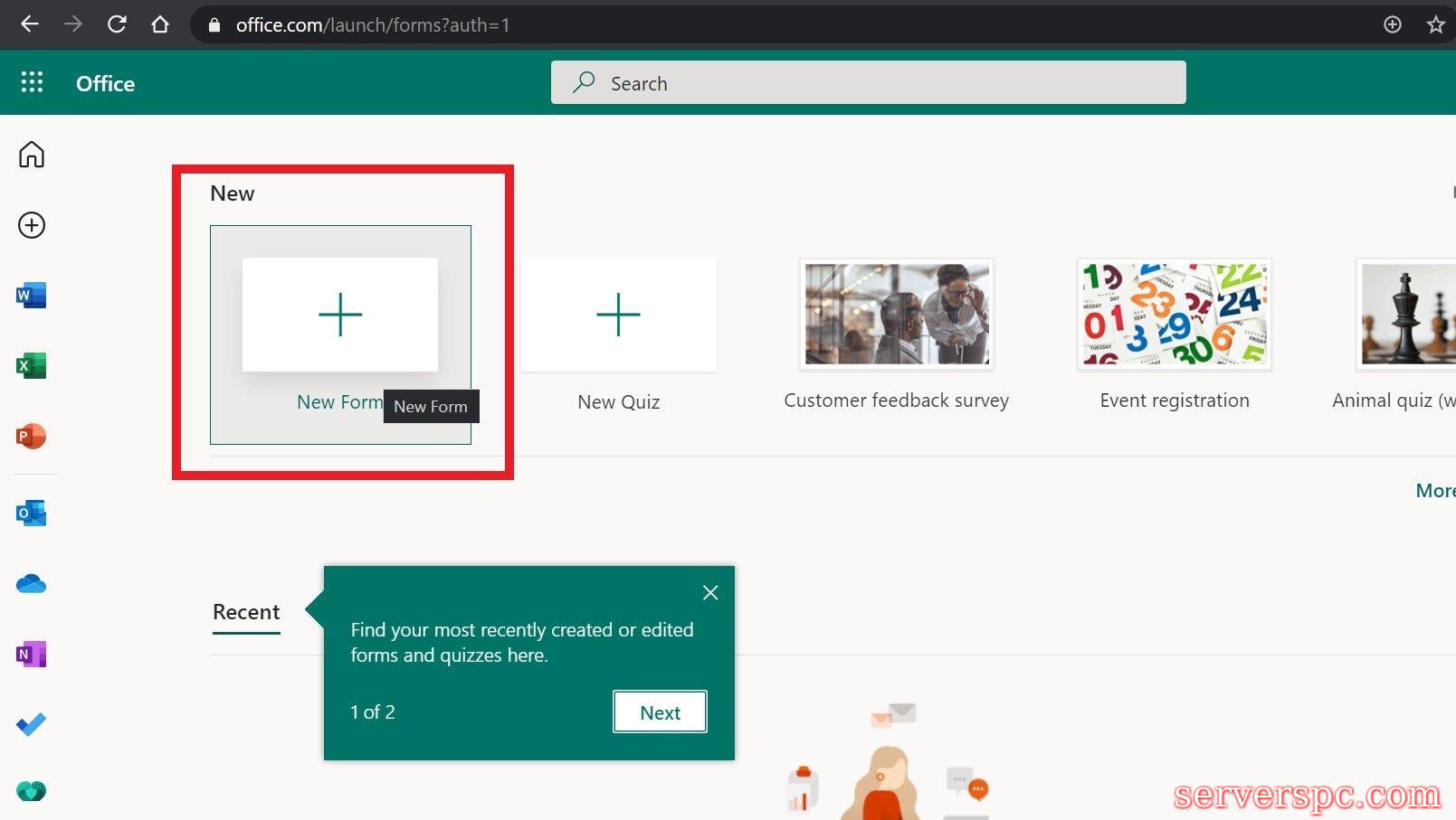 首先,转到forms.office.comlogin到您的Microsoft帐户,点击新表格