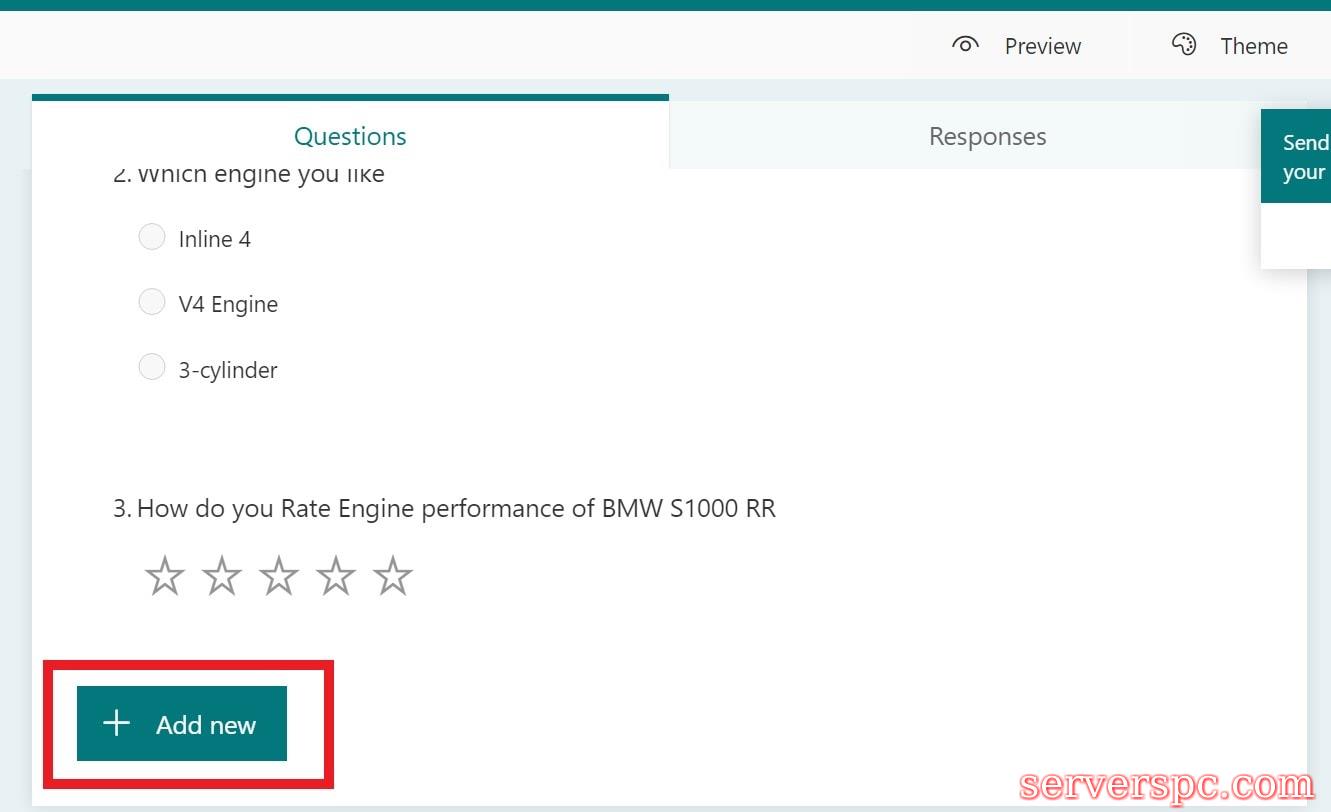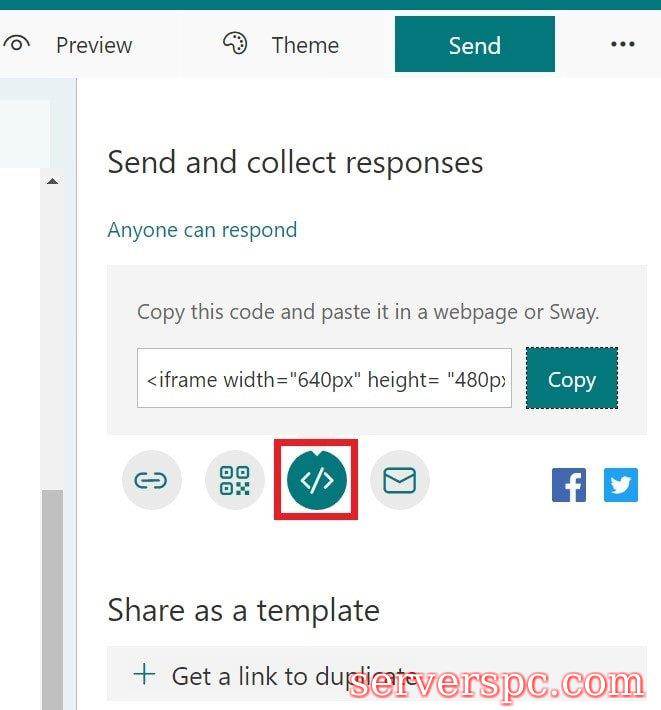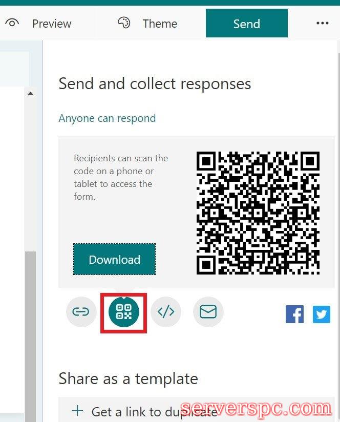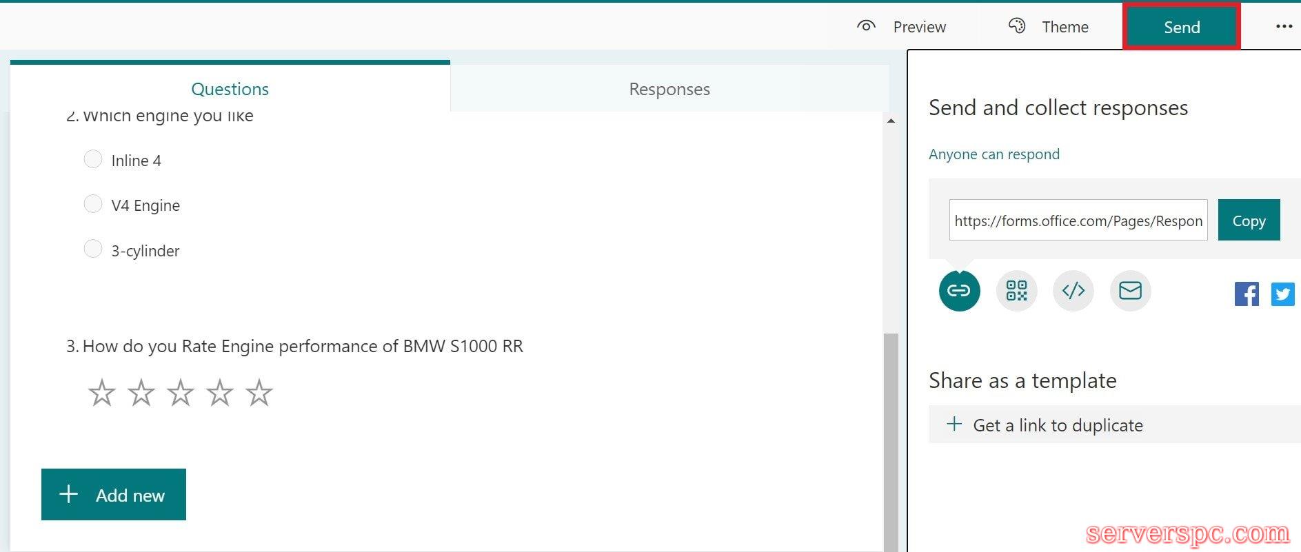 现在,完成Microsoft表格后,您必须将其发送给所需的收件人。单击右上角的“发送”按钮。