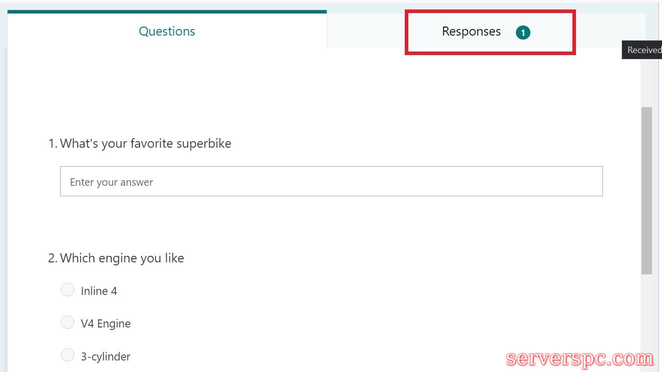要检查并通过响应,请单击“响应”部分。您实际上可以看到您在表格上收到了多少响应。