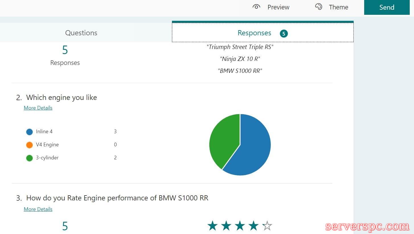 您可以看到响应总数。另外,如果存在多项选择问题,则可以以图形饼图格式看到答案。您可以看到下面的屏幕截图以了解其外观。