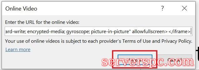 但是,我们在这里谈论将YouTube视频嵌入PowerPoint幻灯片上。无需收集信息。因此,您不必检查该选项。在幻灯片上显示YouTube视频链接