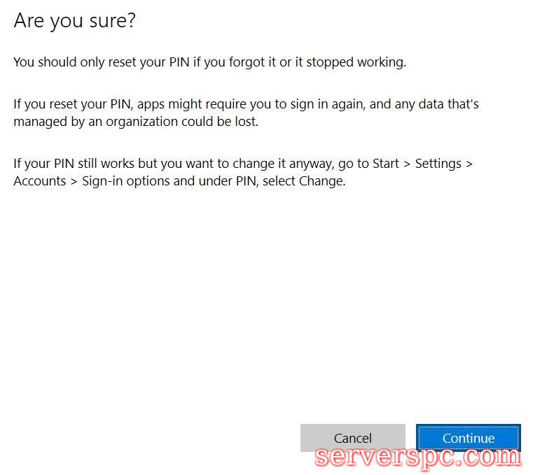 现在,从其子菜单中,单击我忘记了我的PIN选项。它将通过确认消息打开Microsoft帐户提示。单击继续,然后按照此之后按照屏幕上的指示进行操作。输入您的Microsoft帐户密码,然后您可以使用旧的PIN或也可以使用设置新PIN的选项。完成后,关闭窗口并导航到Windows Hello Pin选项当前不可用的错误正在发生错误。这里检查问题是否已解决。