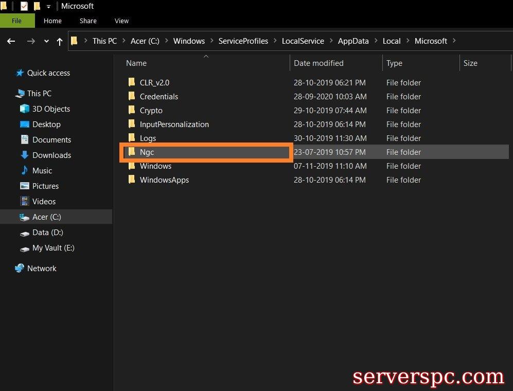 C:\ Windows \ serviceProfiles \ localservice \ appdata \ local \ Microsoft \ ngc。