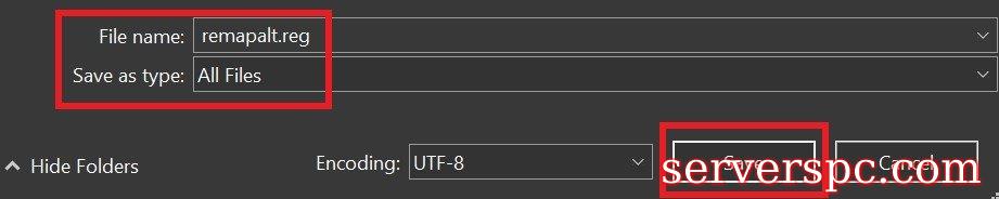 复制上述代码后,只需将其粘贴到记事本上,它可以肯定不要对您自己的单行文件保存在您选择的任何内容的情况下保存文件名,但请使用扩展名称dotreg [ i将其作为remapalt.reg ]