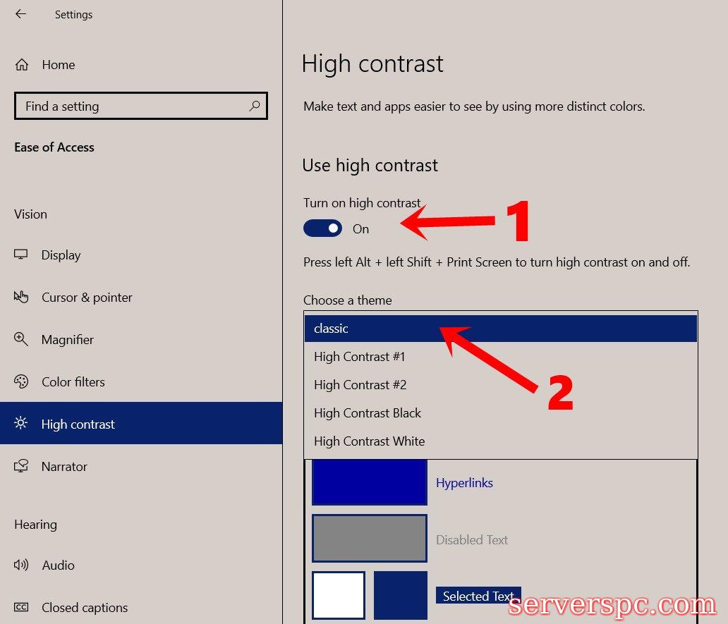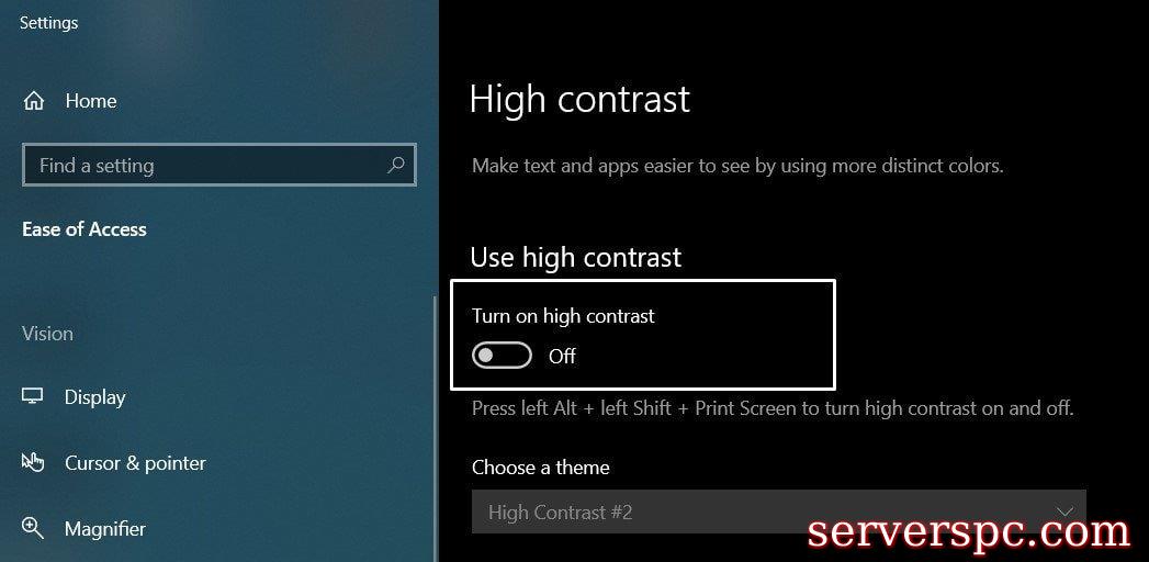 如果您使用Windows 95主题并希望恢复为Windows 10主题,请转到“高对比度设置”,禁用高对比度切换的转弯。而已。这样做将使您回到默认主题。您可以随时仅通过启用“转向对比度”选项并选择经典主题来切换回到Windows 95主题。