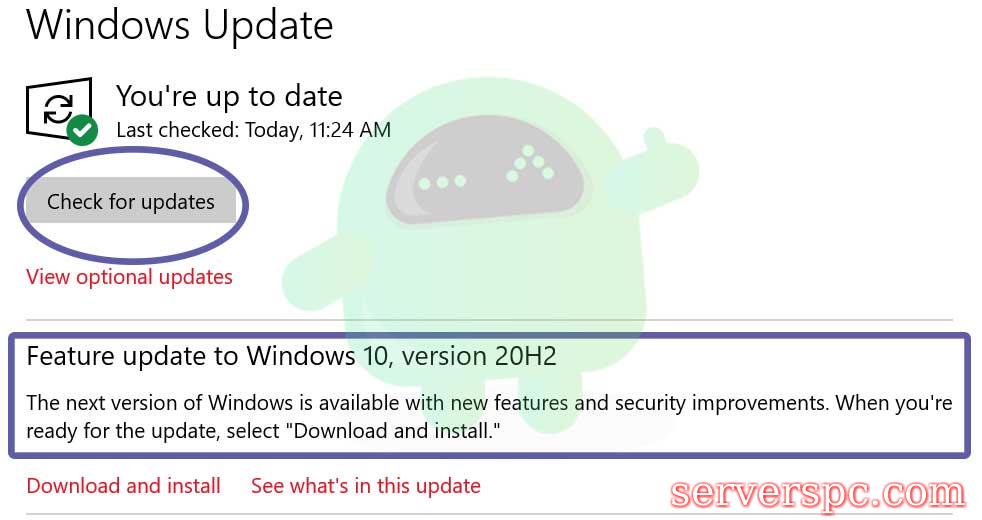 从 Windows Update 部分中,单击检查更新。如果有更新,请单击下载和安装。 OneDrive登录错误是否固定。