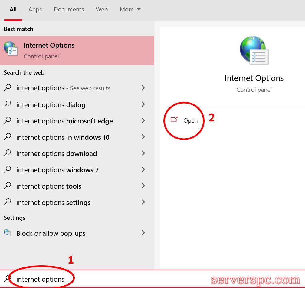 单击“开始”菜单键入Internet选项,然后从搜索结果中单击它。