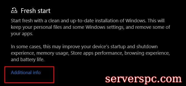 现在滚动到底部,然后在“新开始”部分下单击其他信息。