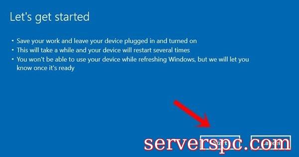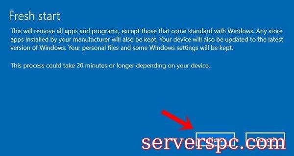 现在是时候从无需膨胀软件的情况下重新安装Windows 10的过程开始了。因此,从“新开始”对话框中,单击下一步。