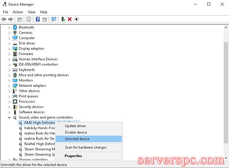 首先,在Windows搜索栏中键入设备管理器,然后从结果接听器中打开Thedevice Manager,找到音频驱动程序的音频驱动程序,视频和游戏控制器,右键单击可以选择touninstallthe设备