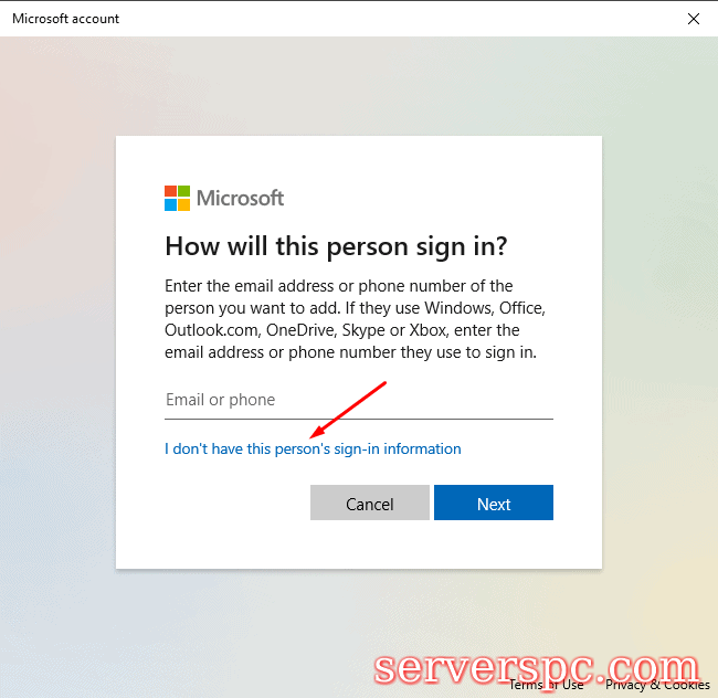 然后,从右窗格中,单击OnAddd的其他人进入此PCUNDERTHETHETHERSECTION,请继续进行此操作,没有此人登录信息