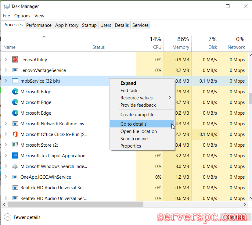 查找您要更改和右键单击该程序的计划。从下拉菜单中选择“转到详细信息”选项。如果您可以从“进程”选项卡中输入此处,则应突出显示您的进程。right oncright单击所选的过程,然后从下拉菜单中选择“设置优先级”选项。