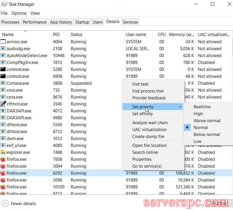 如您所知,当您更改任务管理器中的流程优先级时,您可以确定CPU应为该过程提供多少内存空间和资源。更高的优先级意味着该过程将获得更多的资源。默认情况下,大多数应用程序以正常优先级级别开始。
