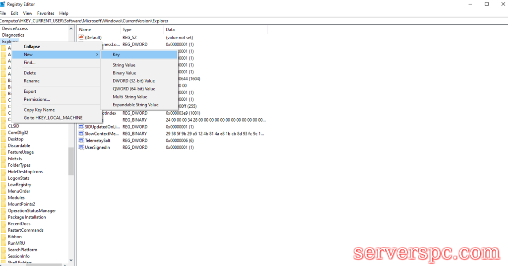 右键单击左侧的Explorer键,然后选择NewKey。将新键的名称设置为外壳图标,然后按Enter。