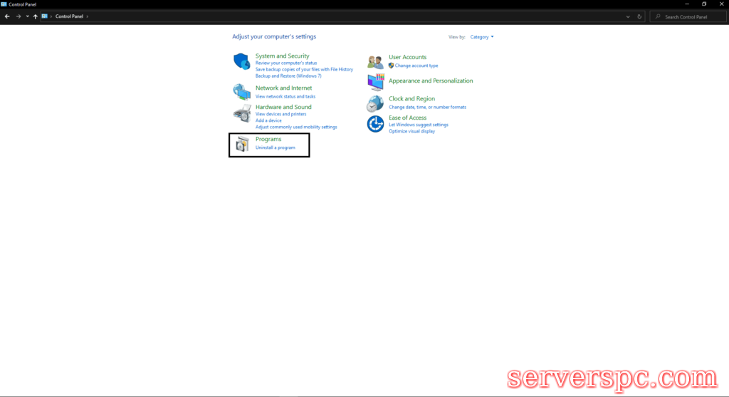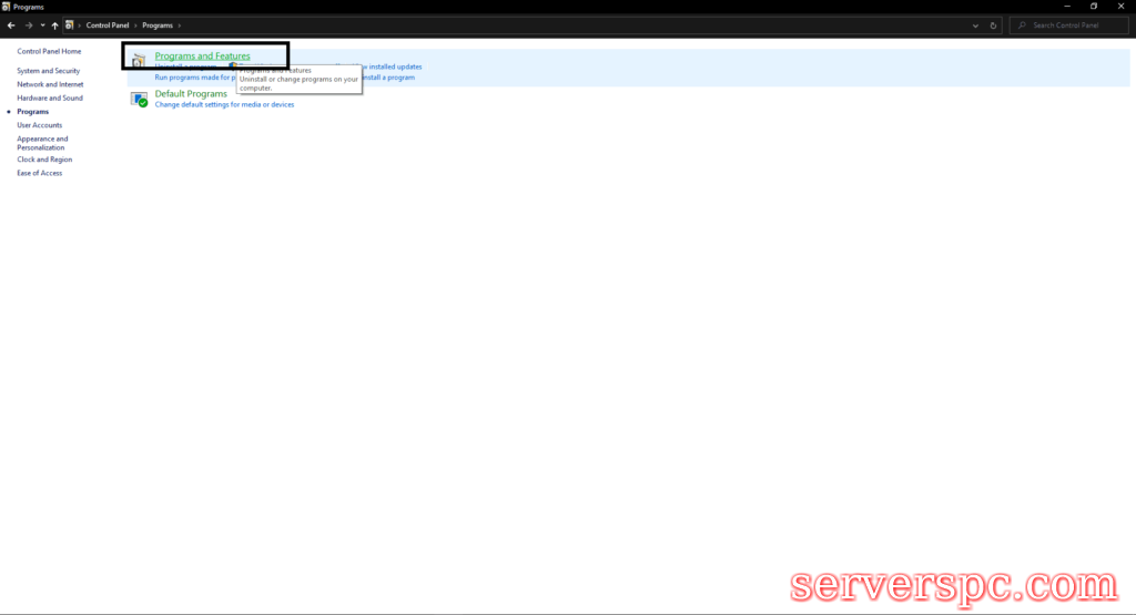 单击搜索栏图标并搜索控制面板。在“控制面板”菜单中打开列表中的第一个结果,单击程序。程序菜单中的广告,单击程序和功能。