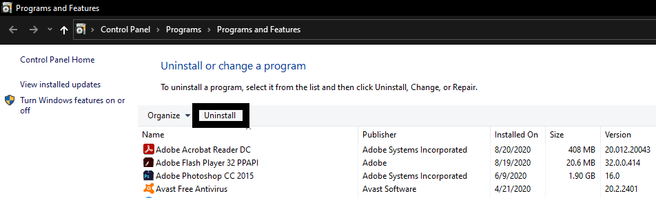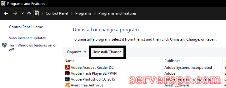 单击您面对错误的应用程序,然后单击顶部的维修或更改选项。