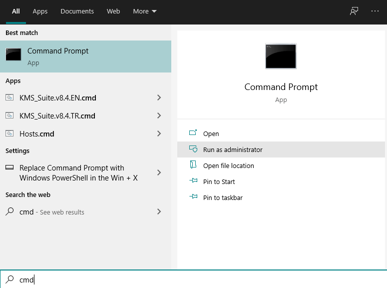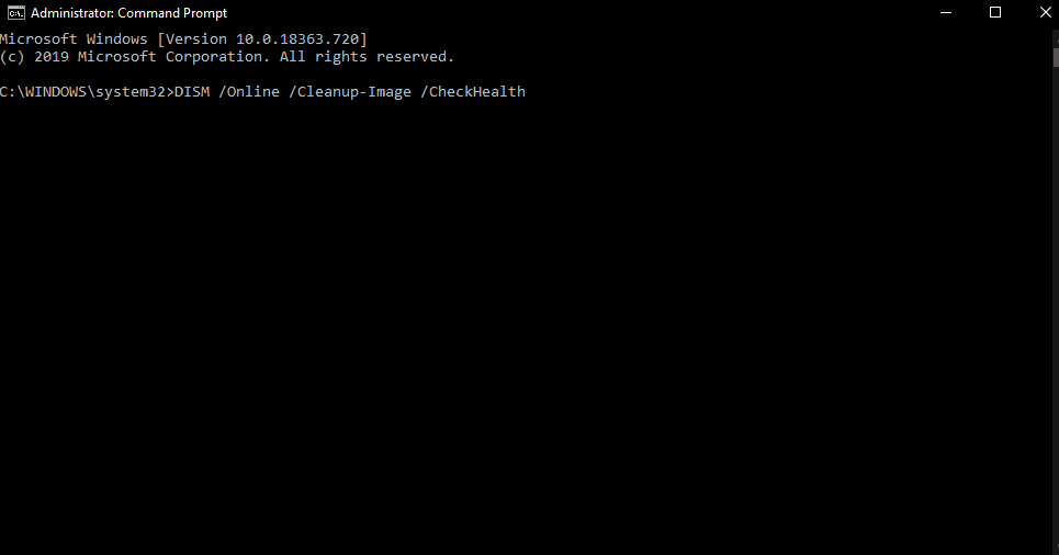 单击搜索栏图标并搜索CMD。显示的结果将具有一个选项,可以打开作为管理员。单击它。输入命令DIMS /ONLINE /CLUANUP-IMAGE /CENCHEALTH,然后按Enter键。然后,等到过程完成。