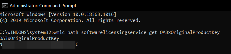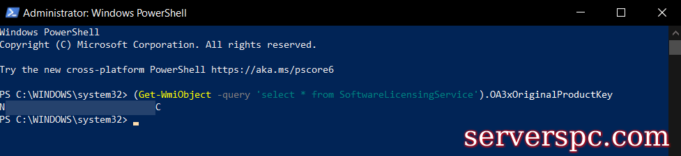 (get-wmiobject -query'select *从softwarelicensingservice')。oa3xoriginalproductkey