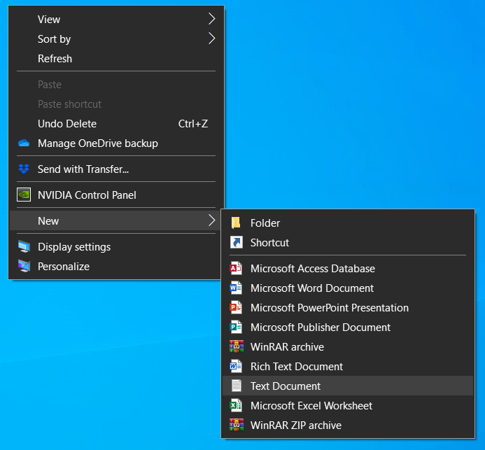 广告首先,您必须创建一个新的记事本文件。为了方便起见,我们将在桌面本身上右键单击桌面上的右键,然后选择新的文本文档。