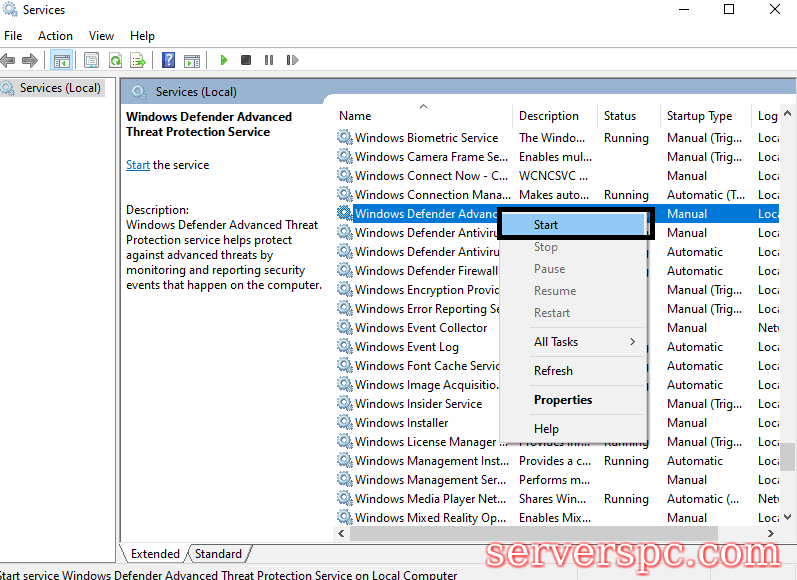 按Windows键 + r打开“运行对话框”。EnterServices.msc在对话框中,然后单击OK。查看Windows Defender服务,Windows Defender高级威胁保护服务和Windows Defender网络检查服务服务。每个人都选择属性。设置这些服务中的每一个的启动类型。在这些服务中的每一个中,然后选择重新启动。