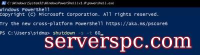 要通过Widows PowerShell执行自动关闭功能,请在Windows搜索栏中键入PowerShell首先启动Windows PowerShell。单击打开PowerShell应用程序,然后键入关闭-s -t 60个命令,在-t参数之后在几秒钟内定义您的时间,然后按Enteron键盘。