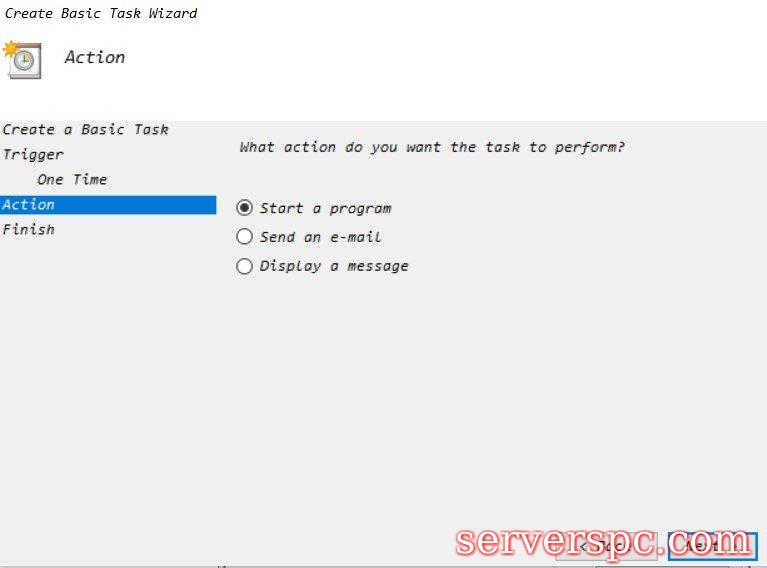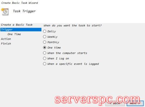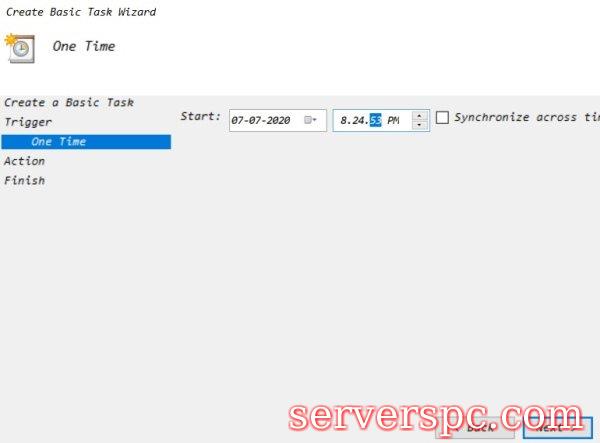 步骤4)现在根据您想要的测试开始时根据您的选择选择该选项。例如,如果要手动运行程序和一次运行程序,请选择一个timeradio按钮,然后单击thenextbutton.step 5)现在,在下一个窗口上,您将设置时间,因此手动输入时间,然后单击单击Thentextbutton。设定时间的可能性几乎是无限的。您甚至可以将时间设置为第二天的下个月,以便在特定的关闭时间内。