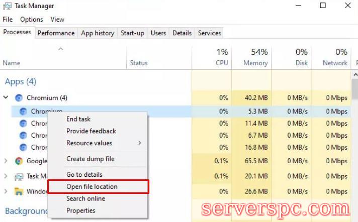 AdvertisementShit CTRL+Alt+Del快捷方式组合组合,然后从菜单中选择任务管理器。然后在“进程”选项卡下,右键单击Chromium,然后选择“打开文件”位置。通常,您会发现许多以Chromium名称运行的过程。如果是这样,您可以对其中任何一个进行右键单击。
