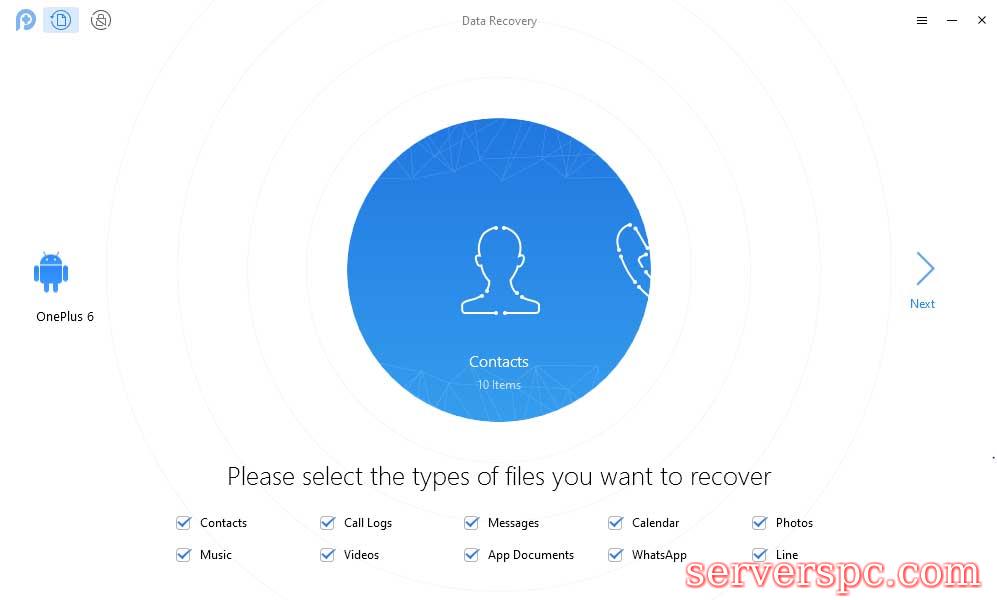 现在,PhoneRescue应用程序将安装在您的设备上。可能需要几分钟,请等待。完成后,您将获得一个具有以下选项的屏幕。您需要选择需要恢复的所有数据类别。