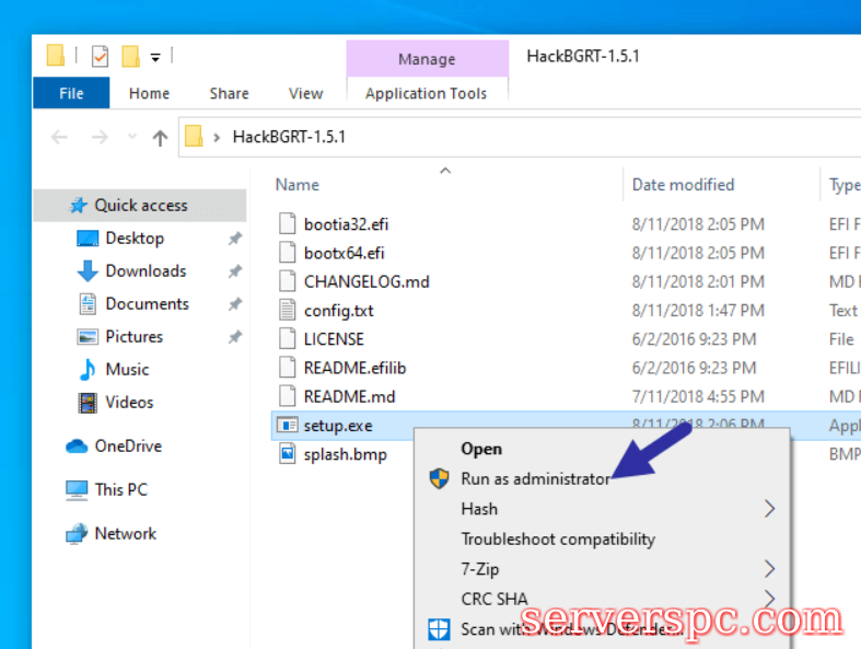 步骤2)之后,您已经从hackbgrt.zip中提取文件,打开hackbgrt目录右键单击setup.exe,run setup.exe作为管理员。您可以选择Windows Boot徽标的图像,将其重命名为Splash.bmp,然后将其保存到HackBGRT目录中以替换您选择的默认徽标。