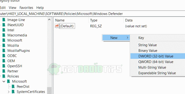 hkey_local_machine \ Software \ policies \ Microsoft \ Windows Defender