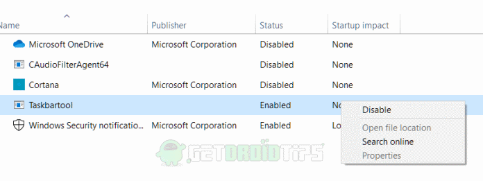 步骤2)转到thestartuptab,然后在任务栏中单击Theopen。选择并右键单击启动应用程序,现在单击Disable.disable所有应用程序。现在,尝试执行任务,看看是否已解决了错误。