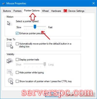 这将打开与您的鼠标或触摸板硬件相关的鼠标属性。在硬件上删除,此弹出菜单将略有更改。通常,该设置将在指针或指针选项下可用。打开标签并在SELECT下更改Slider指针速度。