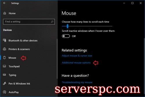 从设备设置中,单击鼠标。最终,单击其他鼠标选项。