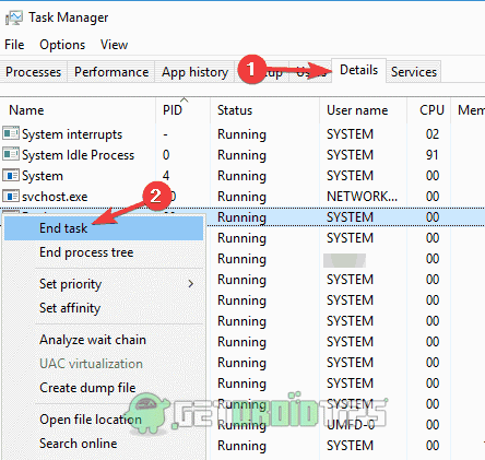 步骤2)现在找到thedetailstab并向下滚动,导航therdpclip.exeservice。