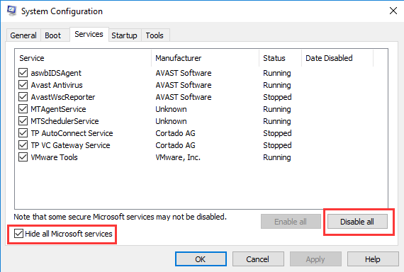 步骤2)单击theServices选项卡,然后检查那里的所有应用程序,但首先检查隐藏所有Microsoft Services选项。
