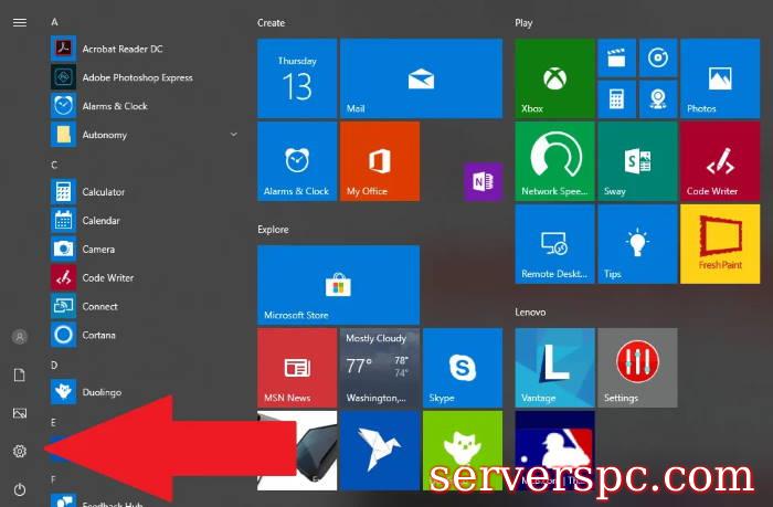 步骤1)单击Windows图标,或按TheWindows Keyon您的键盘打开Windows菜单,现在单击开始菜单左侧的Windows设置图标,即齿轮形图标。