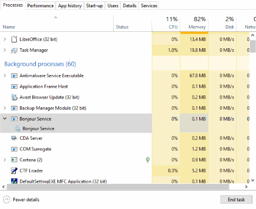 步骤3)向下滚动并找到在系统上运行的非必需应用程序,右键单击该应用程序,选择“末端processoption”,或者只需选择应用程序,然后单击窗口底部的末端ProcessButton即可。