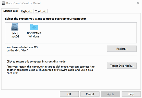 您还可以使用Bootcamp应用程序在MacOS和Windows之间切换。