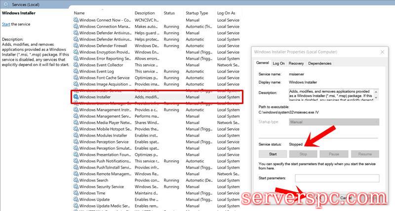 转到“开始菜单”和“搜索服务”。查找Windows Installer并双击它以打开其属性。在启动类型下,更改手册为禁用,或者您也可以单击“状态”部分下的停止。在完成后,请单击好的,关闭对话框。再次转到Windows Installer属性,现在将启动类型更改为手动或在状态部分下的“启动”。单击确定。