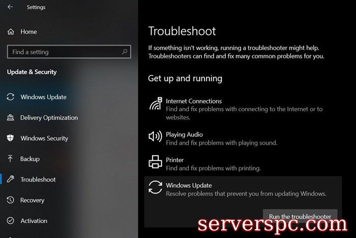 从“开始”菜单中转到设置,然后转到“更新和安全”部分。从左菜单栏上单击故障排除。单击Windows更新,然后运行故障排除。按照屏幕上的说明完成该过程。