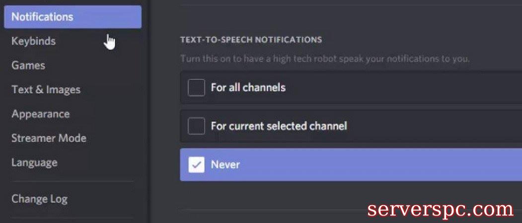 如何将Discord tts文本修复到语音上不适用于Windows 10错误并使文本可以在Discord Windows中启用文本选项。10将“ Never Option”在Discord Notification Notification Changange Changange Changange Changange中划定您的Windows ConconConconculusion时将Never Option Changange Changange Onthanging Contrification Windows。