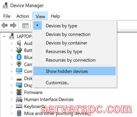 从开始菜单中搜索设备管理器。您还可以右键单击“开始”菜单,然后选择上述选项。单击“查看”选项卡,然后选择“显示隐藏的设备”。这将使在设备管理器下可见Miniports选项。